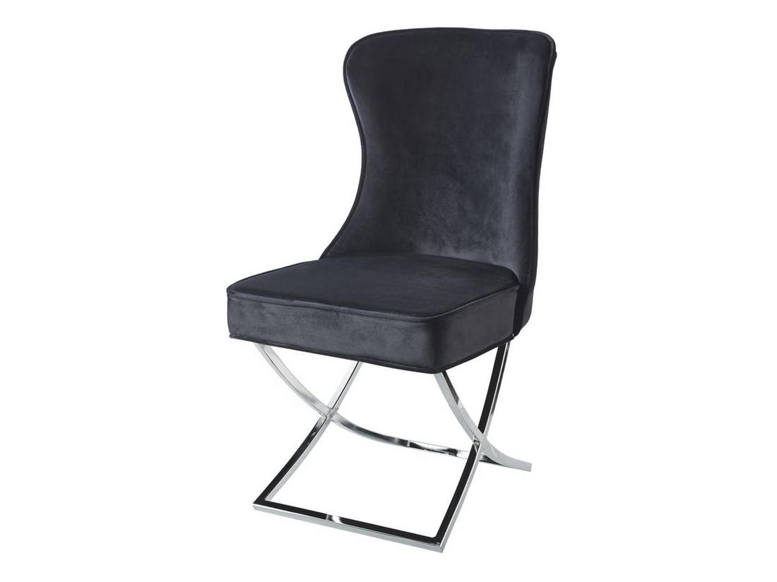 Lot 2 Chaises Salle à Manger Gabrielle Capitonnées Velours Noir Pieds Chrome 59x52x95cm