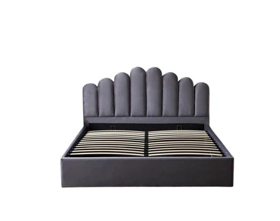 LIT COFFRE CAMILLE en velours GRIS 160X200CM
