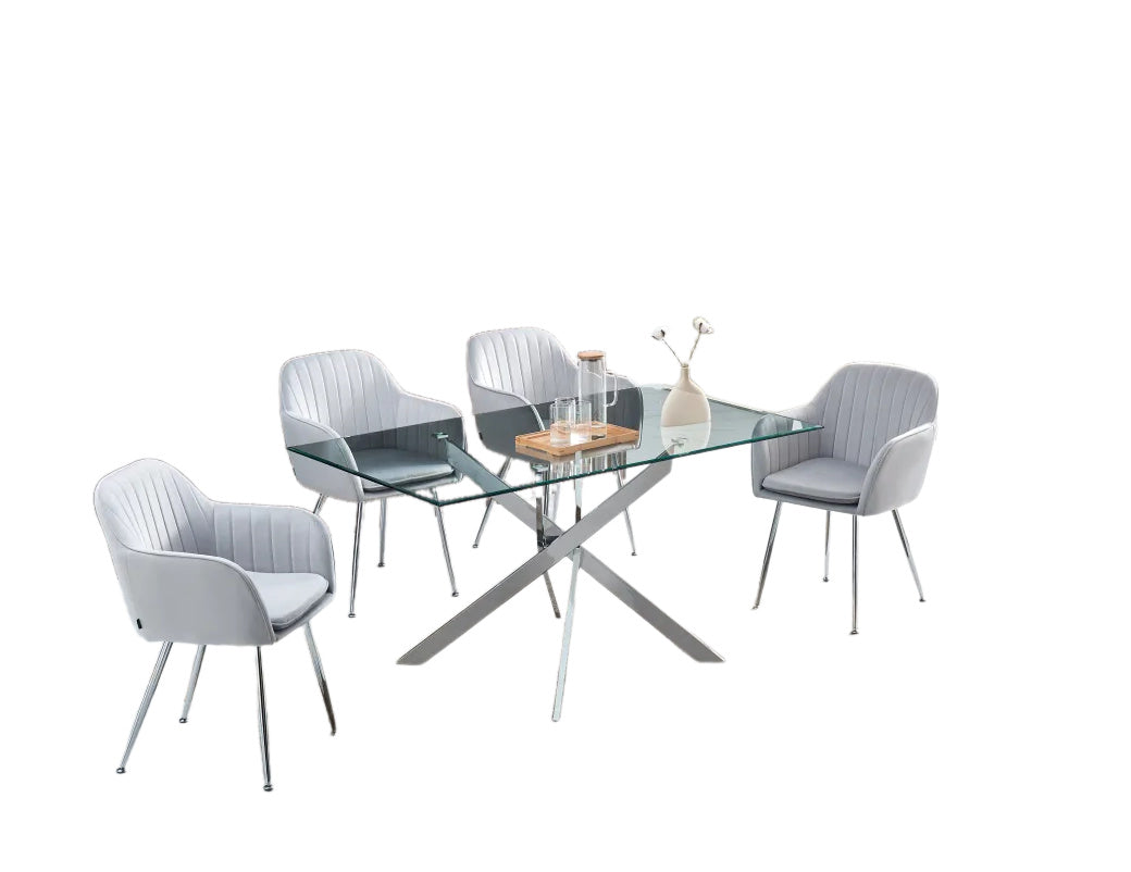 Table Repas JESSICA XXL Chrome et plateau en verre TRANSPARENT 180 cm 6 à 8 couverts
