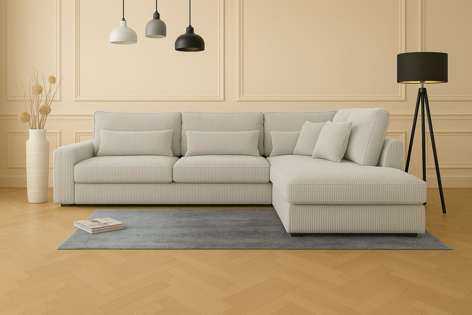 Canapé BRISTOL – En L – Angle Droit – Velours – 314x224 cm