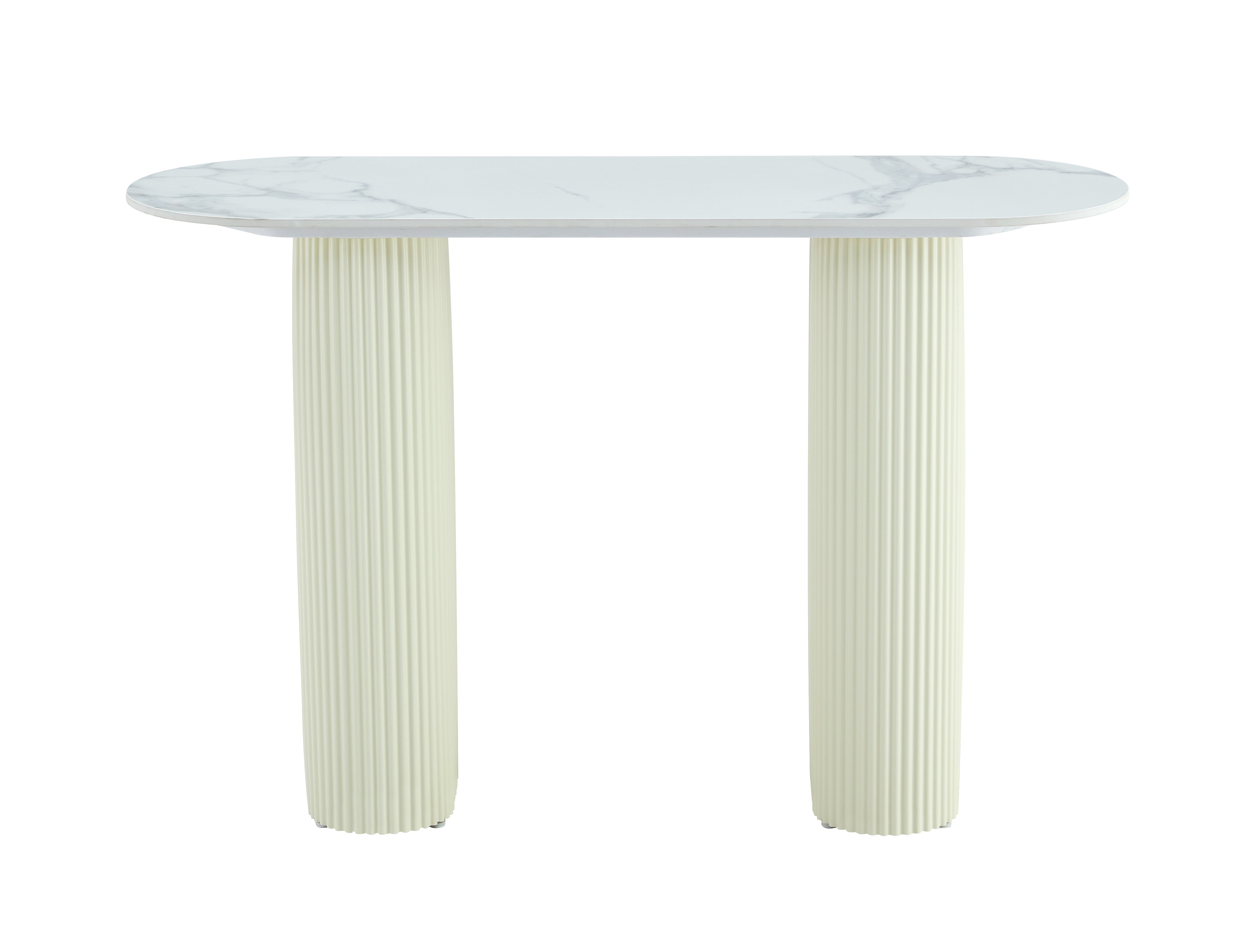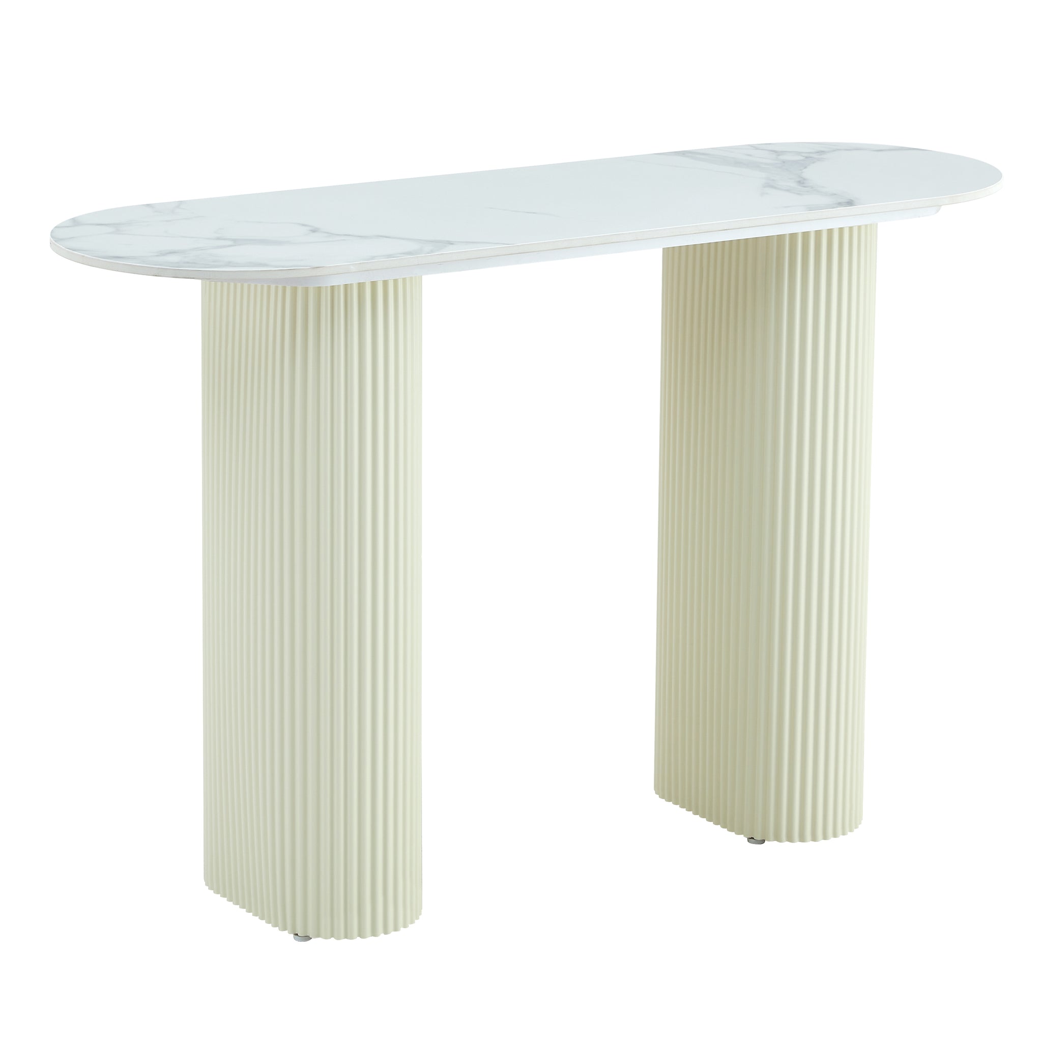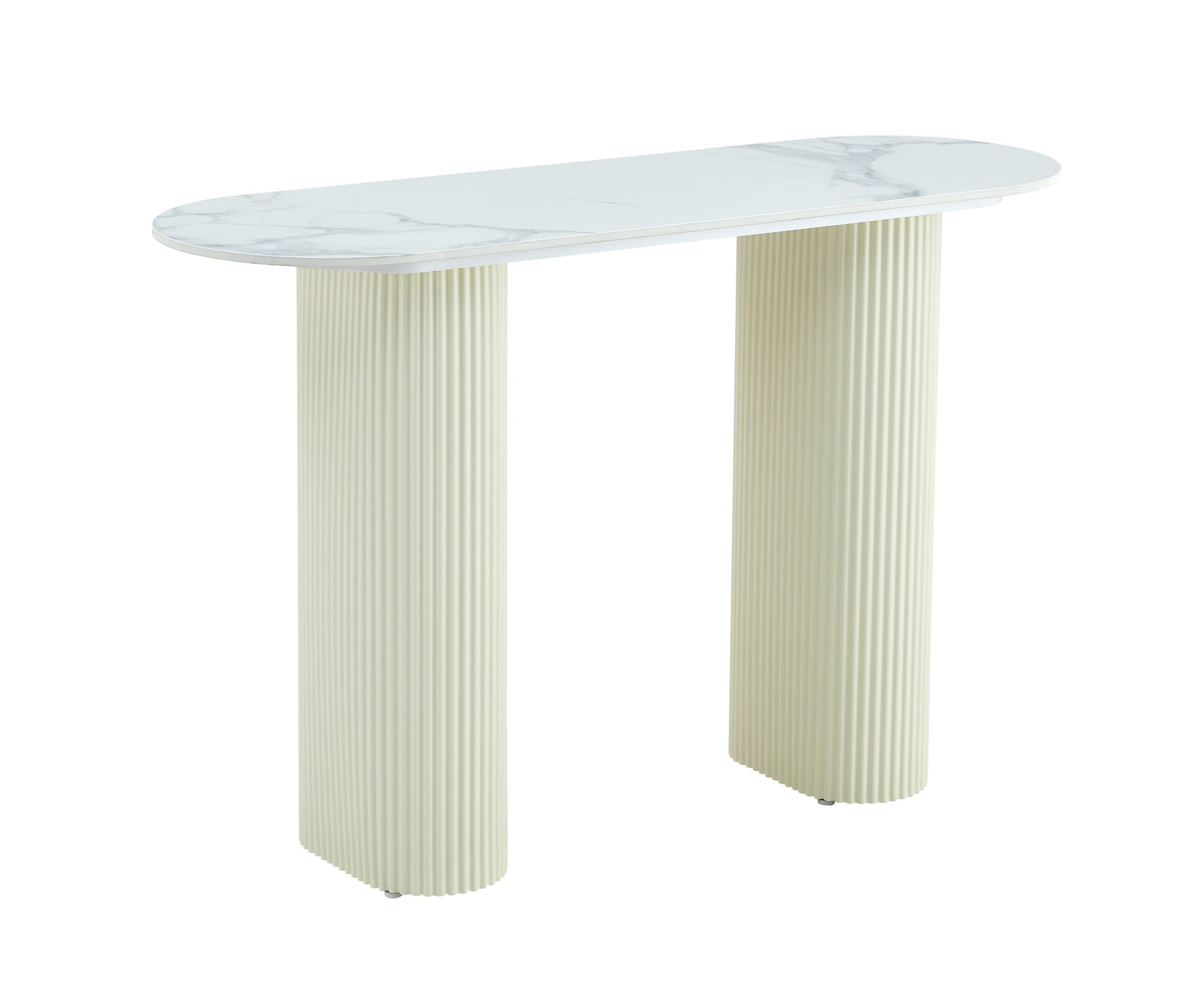 Console ROXY Céramique Marbre Blanc & Pieds Beige 120x40x78 cm