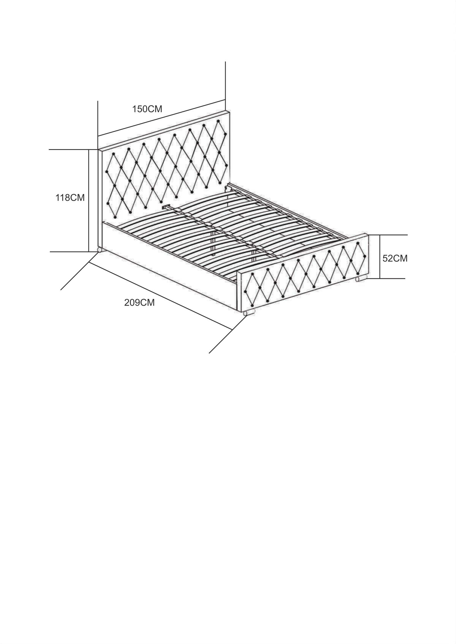 - Dimensions du couchage : 140x190 cm