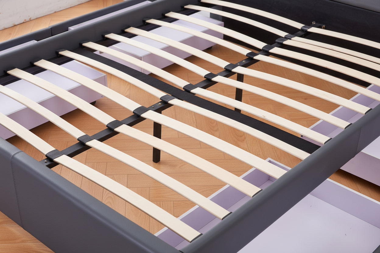 Lit adulte 2 places 140x190 cm gris avec tiroirs LED sommier inclus