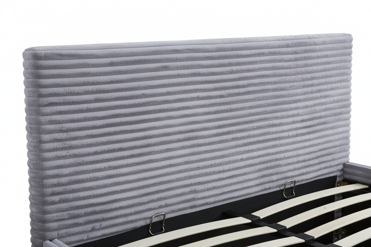 Lit Coffre MAIA 140x190cm Côtelé Gris avec Sommier