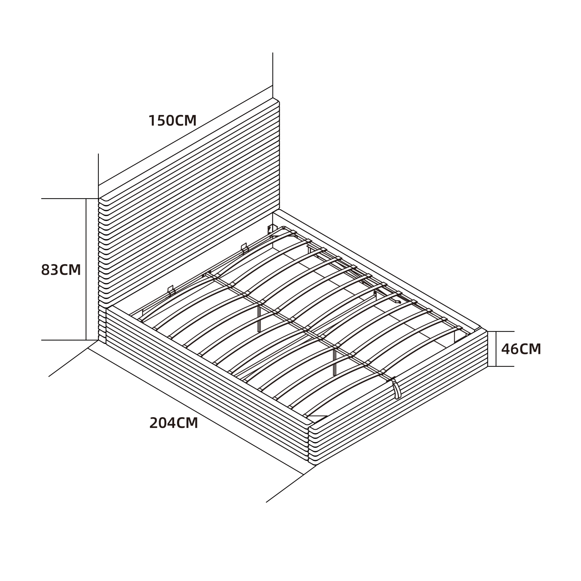 - Système de rangement : Coffre avec mécanisme de levage hydraulique