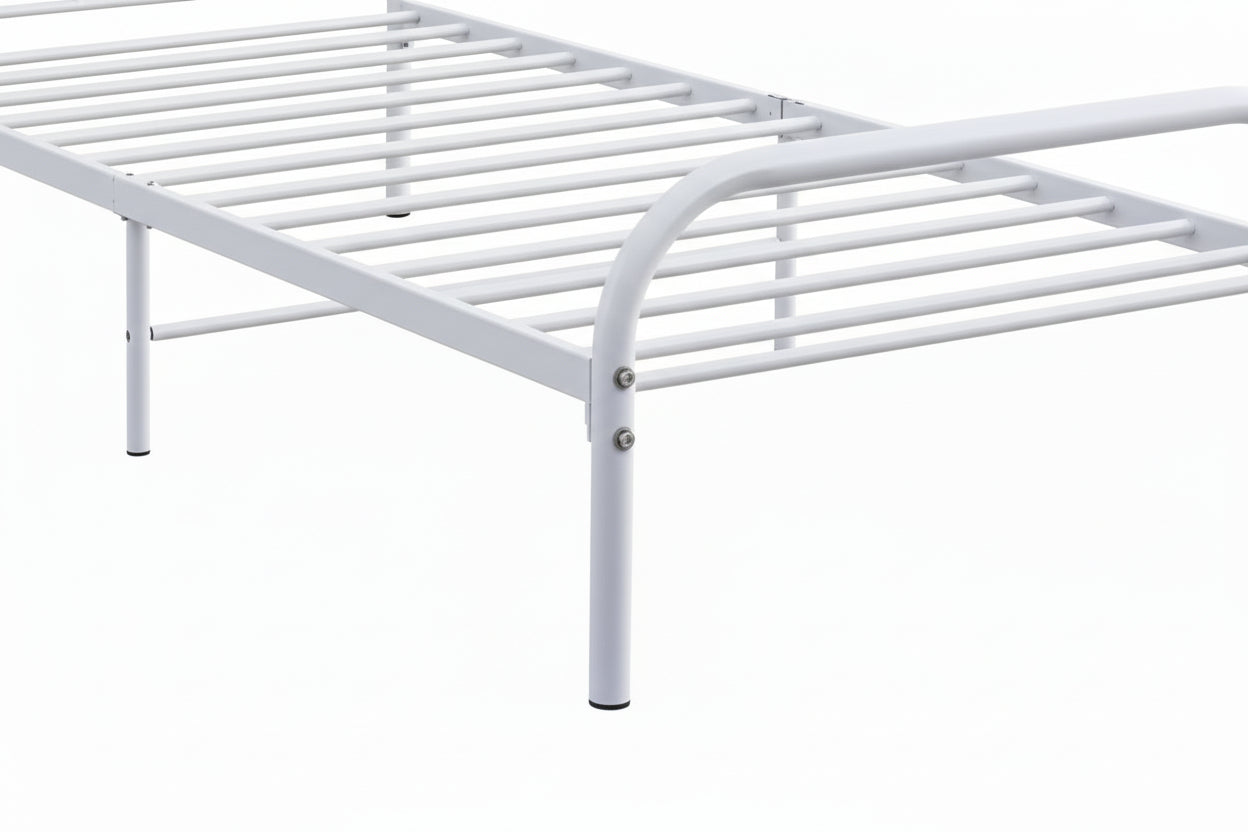 Lit enfant 1 place conçu pour équiper une chambre avec une solution de couchage fonctionnelle. La structure en métal robuste assure stabilité et résistance adaptées à un usage quotidien. Son format 90x190 cm convient à un matelas standard une place. La finition blanche s’intègre facilement dans différents styles d’aménagement. Structure à assembler, adaptée à l’évolution des besoins de l’enfant.
