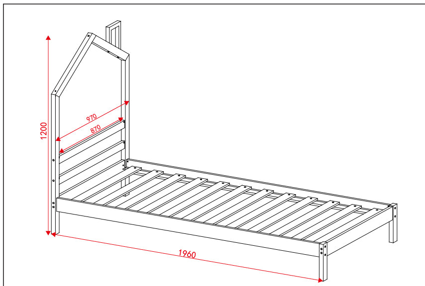 Lit enfant cabane métal gris 90x190 cm avec sommier MONTEIRO