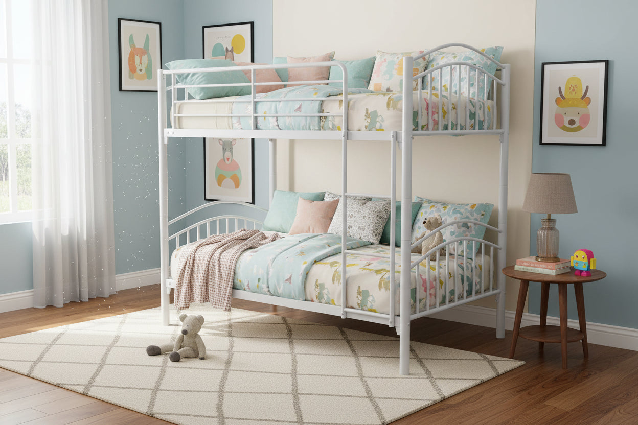 Le lit superposé séparable 90x190 cm en métal blanc est conçu pour offrir un gain de place efficace tout en restant modulable. Sa structure métallique garantit une bonne stabilité et une utilisation durable. Selon les besoins, il peut être installé en lit superposé ou séparé en deux lits simples indépendants. Il convient parfaitement aux chambres d’enfants, d’adolescents ou aux espaces partagés. Sa finition blanche s’intègre facilement dans tout type d’intérieur.