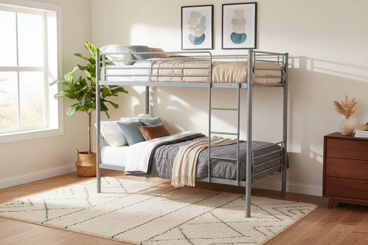 Optimisez l’espace de votre chambre avec le lit superposé séparable en métal, un modèle peu encombrant, fonctionnel et robuste. Composé de 2 couchages 90x190 cm, il convient parfaitement aux chambres d’enfants, d’ados, d’amis ou aux logements locatifs. Grâce à sa modularité, il peut s’utiliser en lit superposé pour gagner de la place ou en 2 lits simples selon l’évolution de vos besoins.