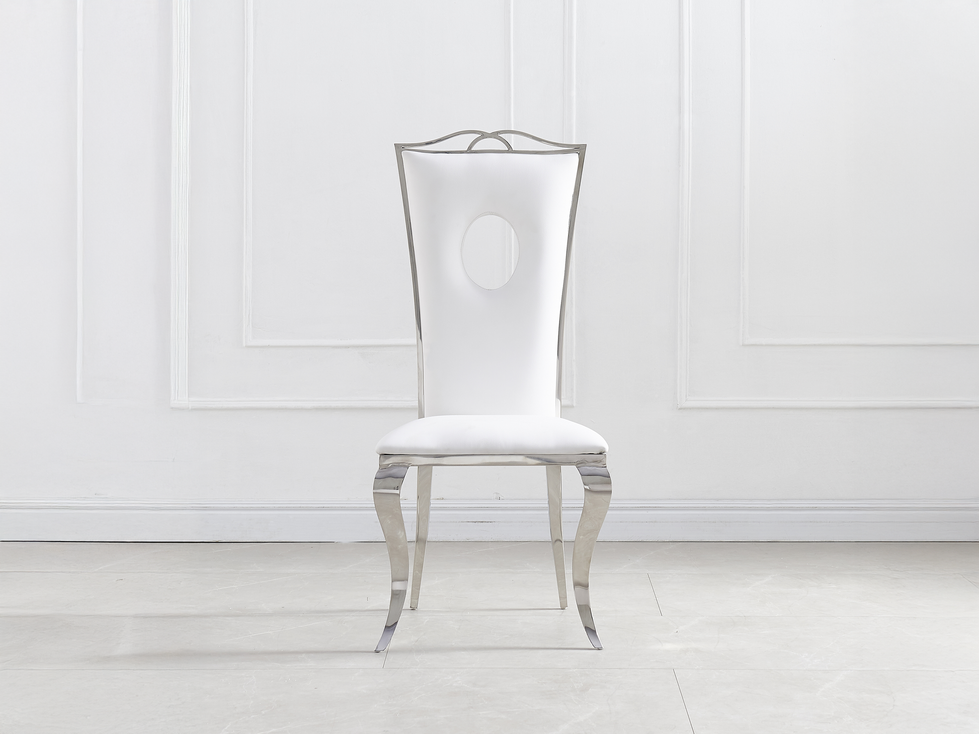 Lot de 4 Chaises baroque ROYAL Chrome Simili BLANC