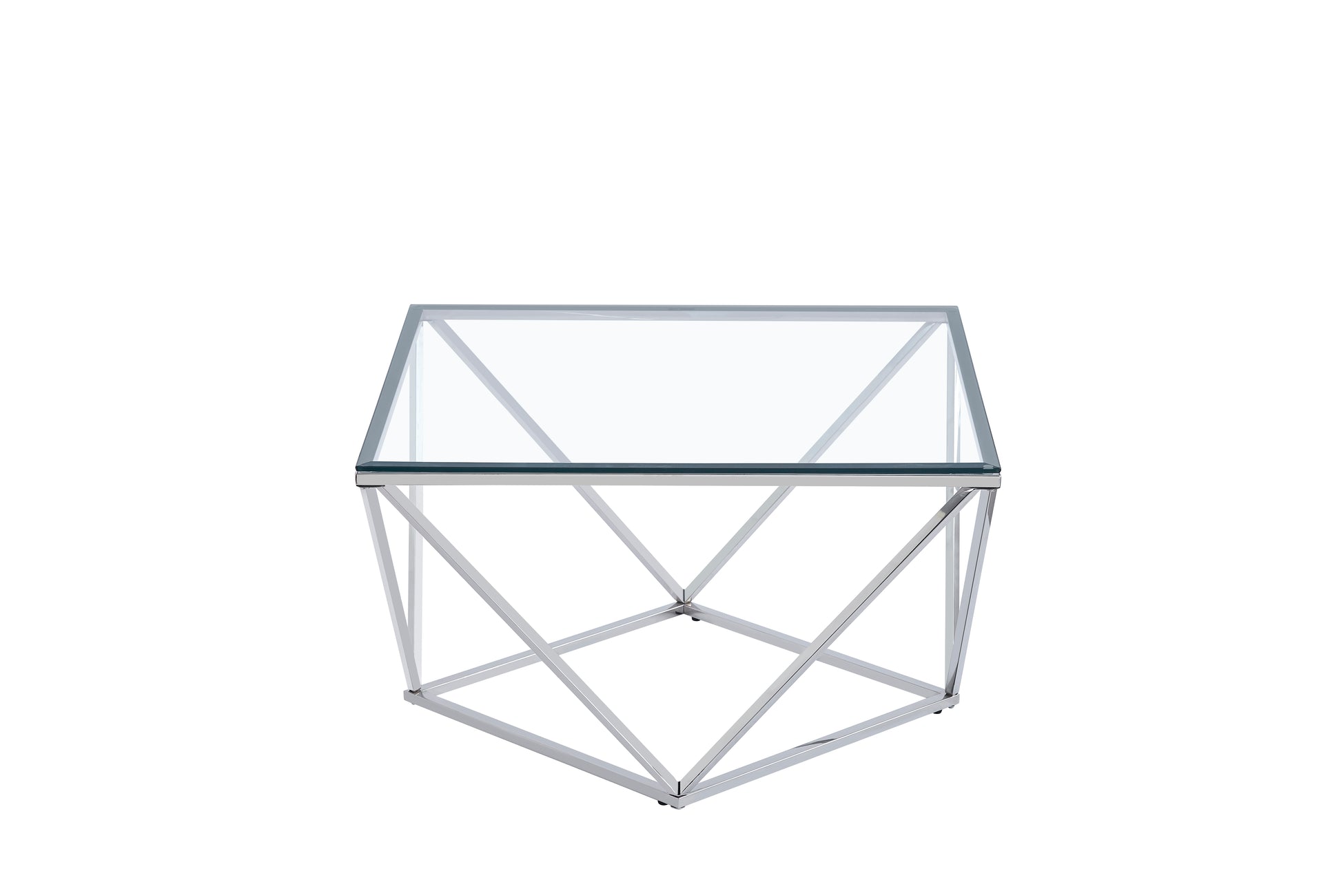 Table Basse Carrée Plateau Verre Trempé Transparent Pieds Chrome 80x80x45cm